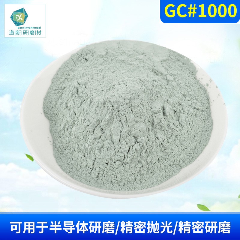綠碳化硅微粉GC#1000 是噴砂拋光研磨用人造磨料綠碳化硅主要物理特性 1.顏色:綠色 2.粒形:有棱角,不規則 3.真密度:3.9 g/cm3 4.莫氏硬度:9.15 5.努普硬度:2600Kg/mm2 6.顯微硬度:2940-3300 Kg/mm2 7.熔點:2730℃